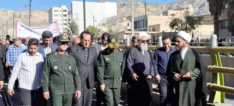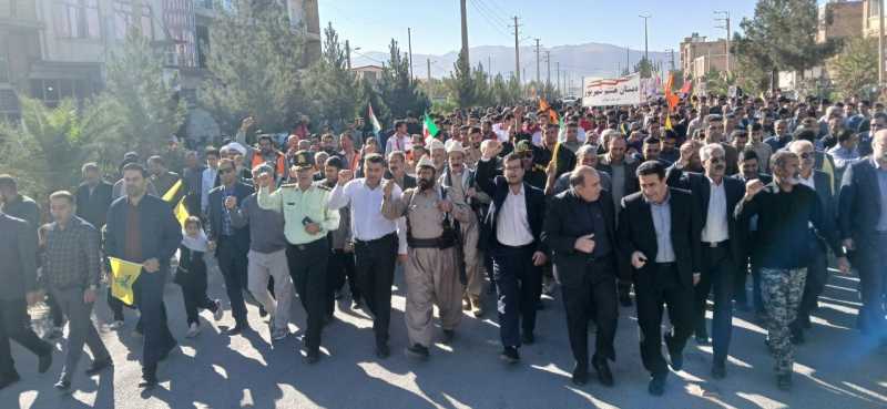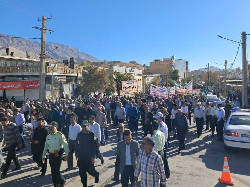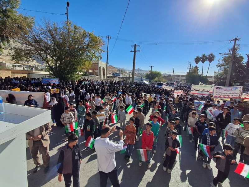 اقشار مختلف مردم، دانشآموزان، فرهنگیان، مسئولان و خانوادههای شهدا با در دست داشتن پرچمهای جمهوری اسلامی ایران و پلاکاردهای «مرگ بر آمریکا» و «مرگ بر اسرائیل»، بار دیگر با آرمانهای امام خمینی(ره) و مقام معظم رهبری تجدید بیعت کردند.