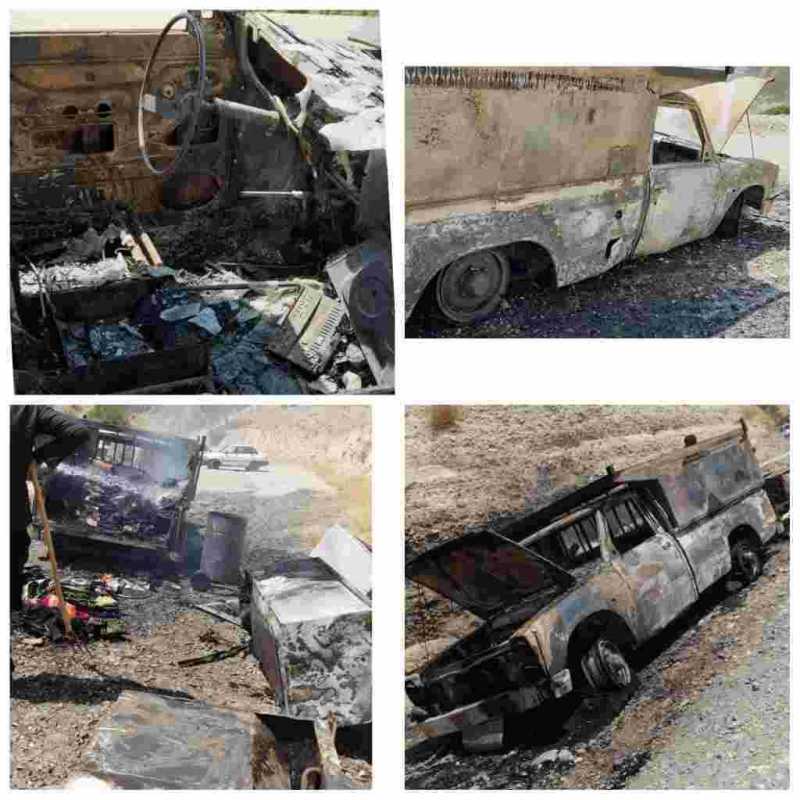 لحظاتی پیش و بر اثر نقص فنی و آتش سوزی؛ خودرو وانت نیسان به همراه تمامی اسباب و اثاثیه دامدار عشایری(جمشید محمدبیگی) که در حال نقل مکان بودند، در تقاطع روستای چنان - امامزاده حاج بختیار از توابع شهرستان چوار، به طور کامل در آتش سوختند.