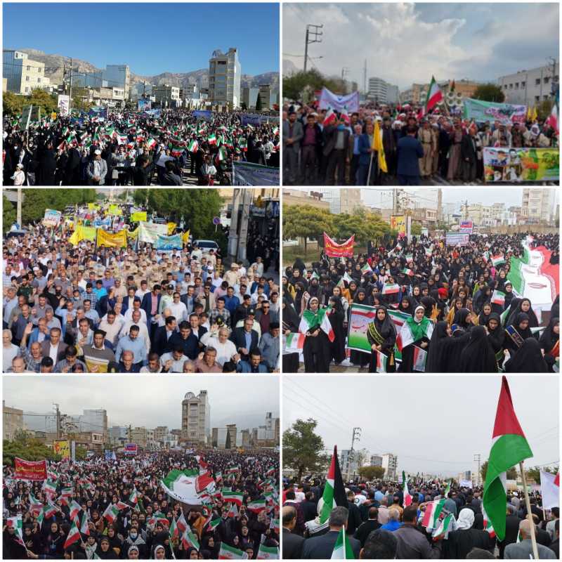بازتاب/ همزمان با سراسر کشور مردم همیشه در صحنه و انقلابی ایلام به خیابان ها آمدند تا به جهانیان ثابت کنند بیش از پیش همدل و هم صدا هستند.