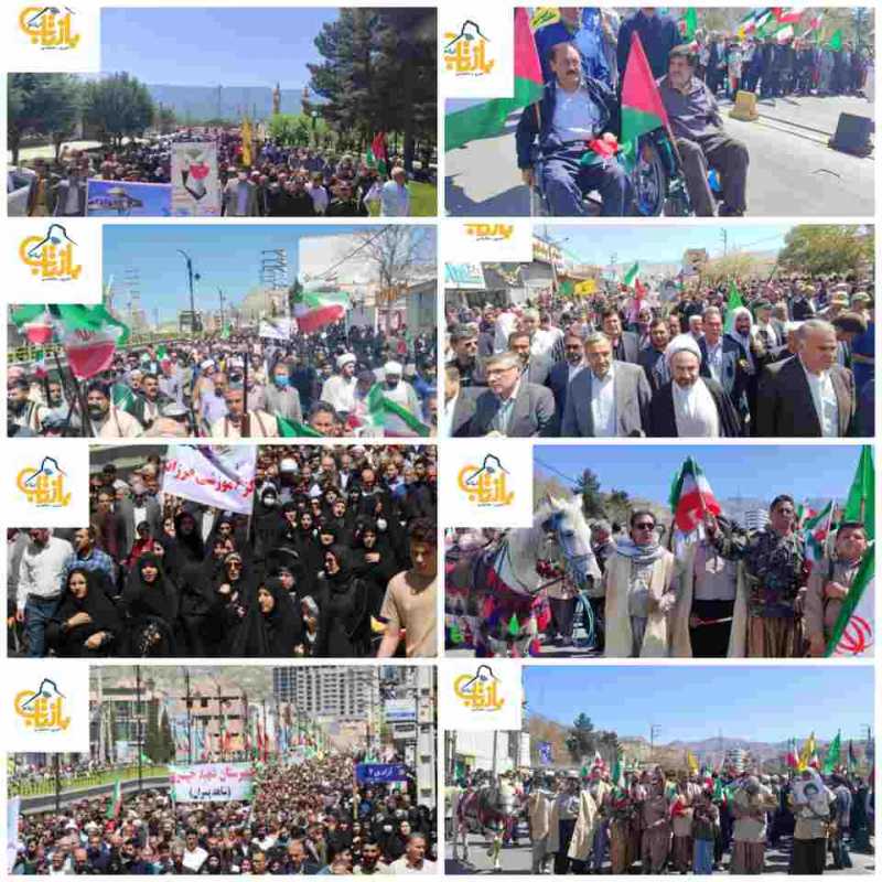 بازتاب ایلام/امروز(جمعه ۱۷ فروردینماه ۱۴۰۳) مردم مرزدار و روزه دار ایلام همپای ملت سرافراز ایران اسلامی و آزادیخواهان جهان، با لبیک به رهبر و مقتدای شان حضرت امام راحل(ره) و حضرت آیتالله خامنهای، با حضوری گسترده و بابصیرت، یکبار دیگر خشم و انزجار خود را از استکبار جهانی و اسرائیل غاصب به نمایش گذاشتند.