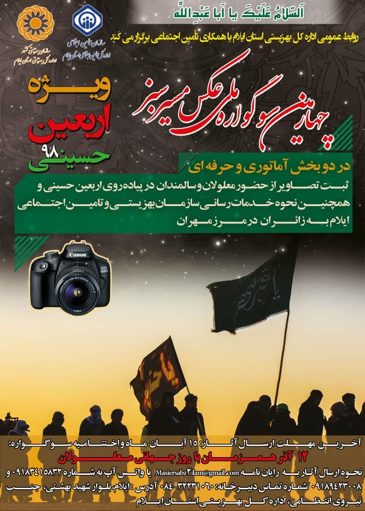 گفتنی است؛ این سوگواره امسال با مشارکت تامین اجتماعی و در دو بخش حرفه ای و آماتوری با هدف ثبت تصاویر از حضور معلولان و سالمندان در پیاده‌روی اربعین حسینی ۹۸ و نحوه خدمات‌رسانی سازمان بهزیستی و تامین اجتماعی به زائران در مرز مهران برگزار می شود.