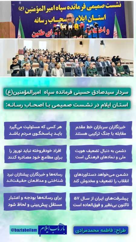 اینفوگرافیک/نشست‌ صمیمی سردار سیدصادق حسینی فرمانده سپاه امیرالمؤمنین(ع) استان ایلام با اصحاب رسانه