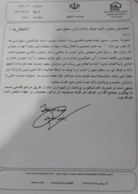 نامه‌ای که روح و روان دکه‌داران ایلامی را به هم ریخت/تیشه بر ریشه فرهنگ!