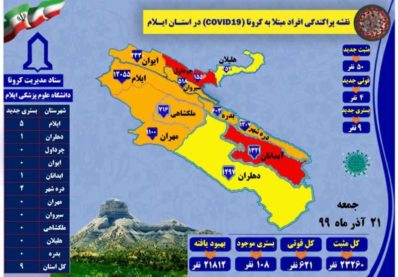 گفتنی است؛ از ۴ مورد فوتی امروز، ۳ مورد مربوط به شهرستان ایلام و ۱ مورد دهلران می باشد.