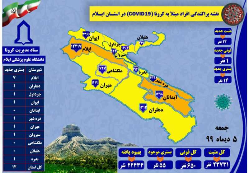 گفتنی است؛ یک مورد فوتی امروز مربوط به شهرستان ایلام می باشد.