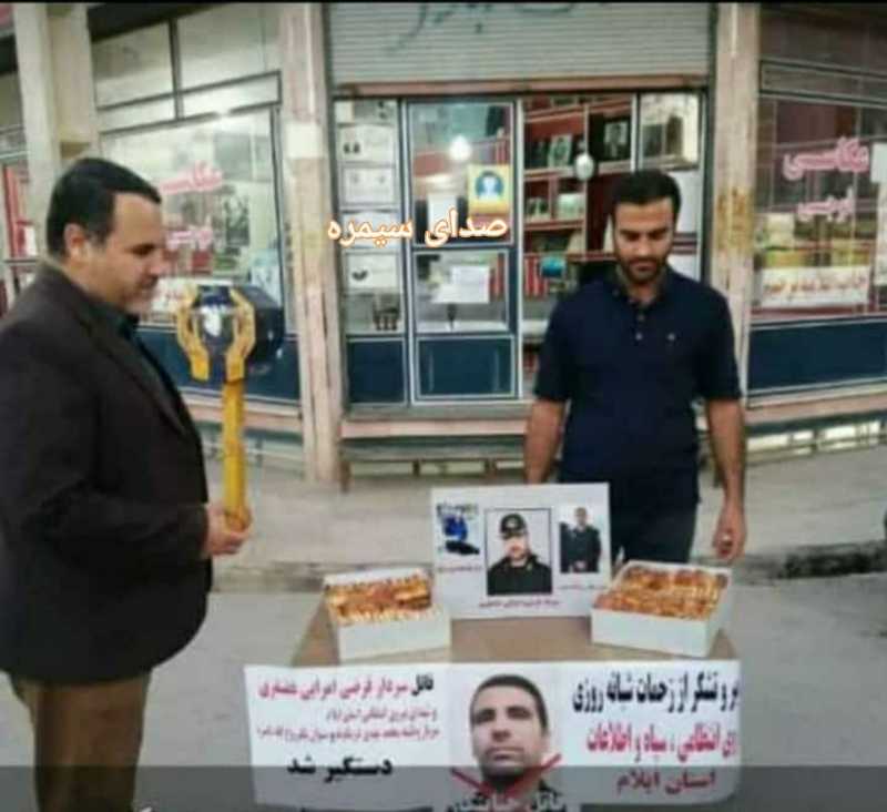 این قاتل که توسط نیروهای انتظامی شهرستان دره شهر دستگیر شد، خواهرزاده اش( فرزند مقتول "فرضی غضنفری امرائی" ) از خوشحالی و جهت تقدیر از پرسنل انتظامی دره شهر، در شهرستان کوهدشت اقدام به پخش شیرینی کرد.!