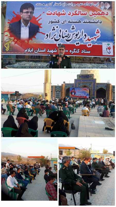 بازتاب ایلام/در آستانه برگزاری کنگره سرداران و سه هزار شهید استان ایلام؛ مراسم دهمین سالگرد شهادت دانشمند هسته ای کشور« شهید داریوش رضایی نژاد» با حضور فرمانده سپاه امیرالمومنین(ع)، مدیر کل بنیاد شهید استان، کرمی معاون استانداری، معاون هماهنگ کننده سپاه امیرالمومنین(ع) استان، فرمانده سپاه ناحیه دره شهر و جمعی از مسئولین شهرستان آبدانان و عموم مردم در محل امامزاده سید صلاح الدین محمد(ع) آبدانان برگزار شد.