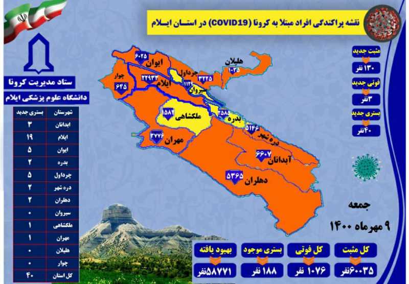 شناسایی ۱۳۰ مورد جدید مبتلا به کرونا ویروس و ثبت سه مورد فوتی در ایلام!