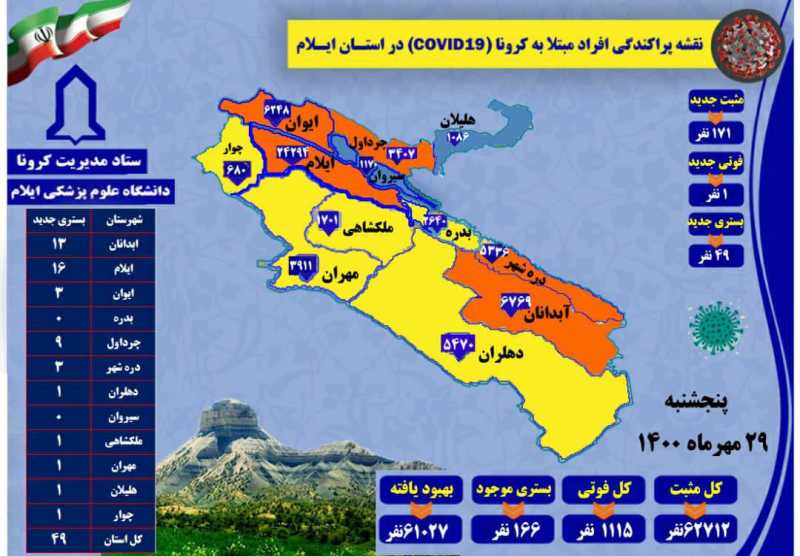 شناسایی ۱۷۱ مورد جدید مبتلا به کرونا ویروس و ثبت یک مورد فوتی در ایلام!