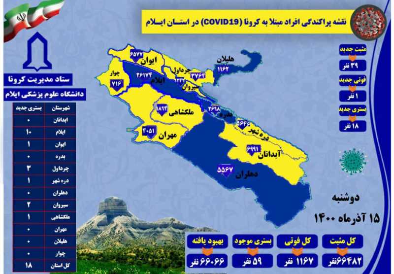 گفتنی است؛ مورد فوتی امروز مربوط به شهرستان ایلام می باشد.