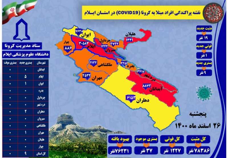 گفتنی است، مورد فوتی امروز مربوط به شهرستان ایلام می باشد.