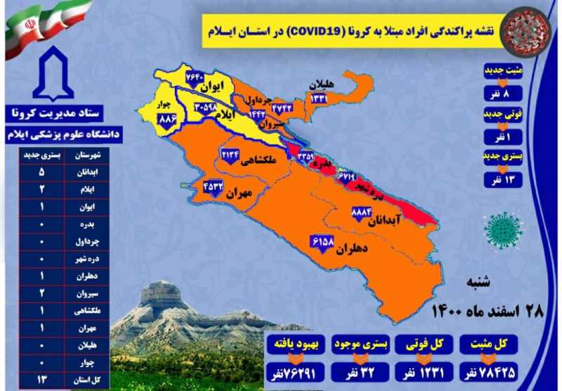 گفتنی است، مورد فوتی امروز مربوط به شهرستان آبدانان می باشد.