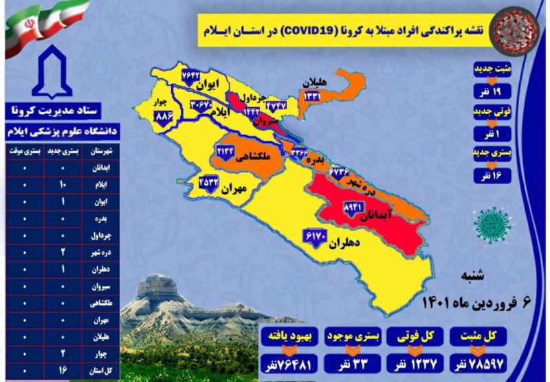 گفتنی است، مورد فوتی مربوط به شهرستان ایلام می باشد.