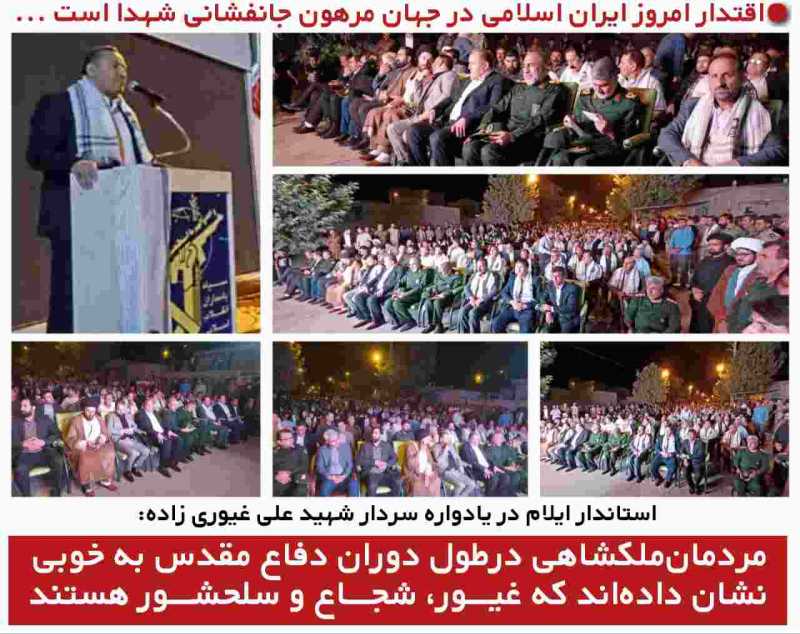 استاندار ایلام در ادامه یاد و خاطره ۳۶۸ شهید ملکشاهی را گرامی داشت و بر روان پاک آنها درود فرستاد و خاطرنشان ساخت: سردار شهید غیوری زاده و همرزمانش با تمام وجود از ایران اسلامی دفاع کردند و جان خود را در راه اسلام، انقلاب و کشور فدا نمودند.
