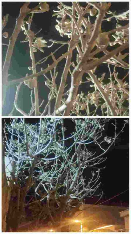 این درخت انجیر که مشاهده می کنید به دلیل گردوخاک ناشی از کوچه خاکی ماهر واقع در محله پیچ آشوری شهر ایلام خفه شده و در حال خشکیدن است.