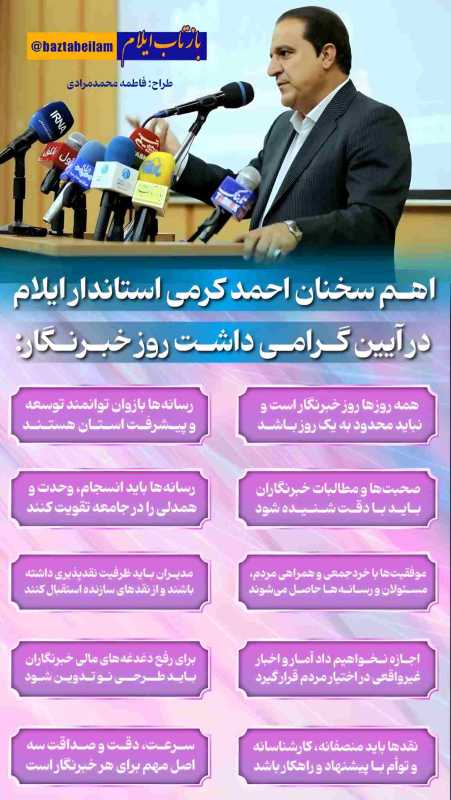 اینفوگرافی/اهم سخنان احمد کرمی استاندار ایلام در آیین گرامی‌داشت روز خبرنگار